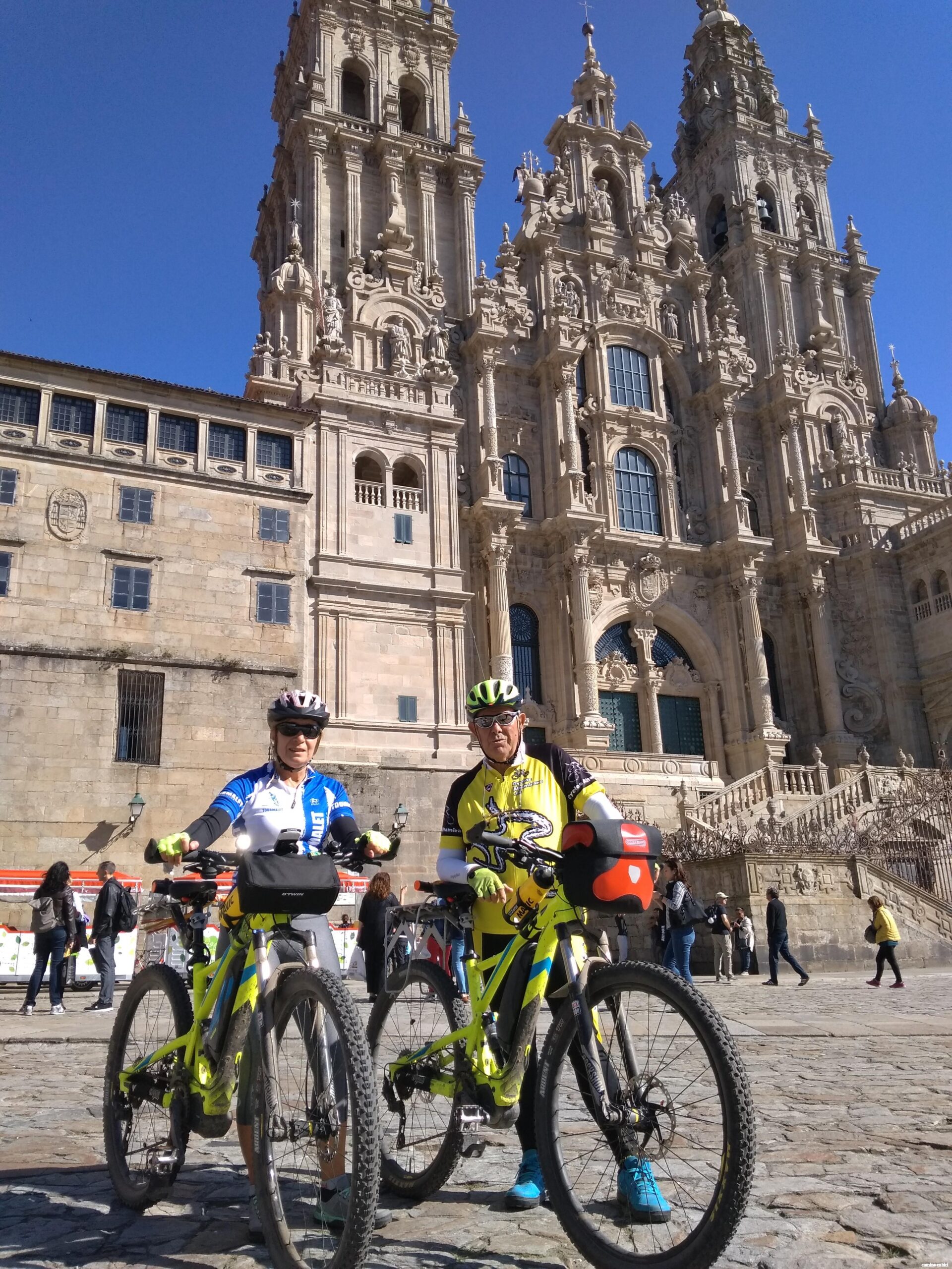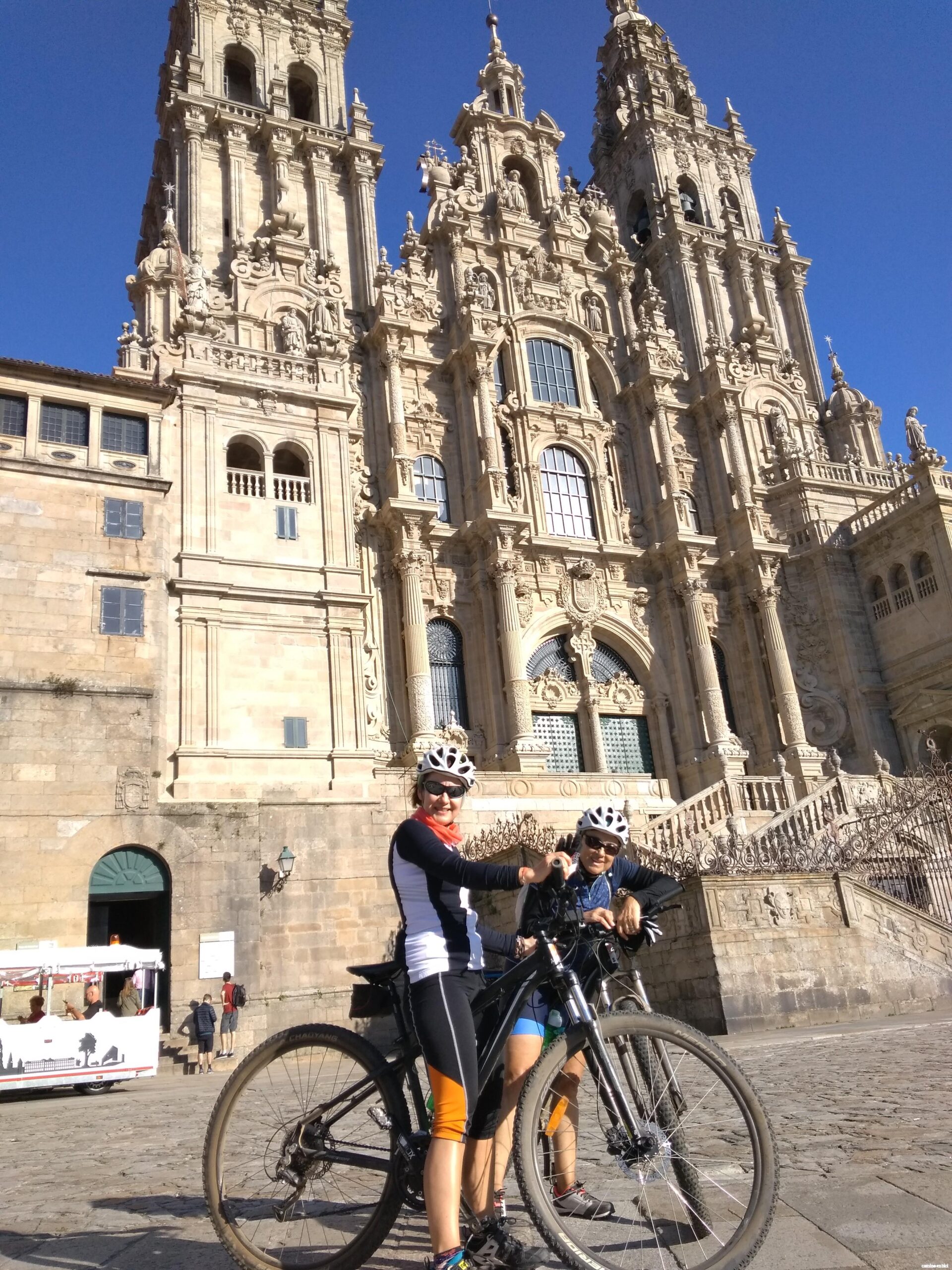 Siempre llena de orgullo coronar el Monte do Gozo, y divisar Santiago de Compostela al fondo. Emprendemos la bajada y ya en la ciudad, los últimos kilómetros se nos hacen eternos, estábamos ansiosos por llegar a la Catedral. Al fin llegamos al centro histórico de Santiago, Patrimonio de la Humanidad, pasamos por la Plaza de Cervantes, dejando a la derecha San Martín Pinario ya podemos oír los gaiteros. Incrédulos llegamos a la Plaza del Obradoiro. Entramos llenos de júbilo y orgullo, lo hemos conseguido. Ha sido duro, pero lo logramos etapa a etapa superamos con éxito los escollos y aquí estamos al fin, frente a la Catedral de Santiago. Al mismo tiempo también nos encontramos un poco contrariados, hemos llegado al fin de nuestro Camino y a nuestra despedida. Un poco tristes por terminar la aventura, nos alivia saber que nos llevamos un trozo del Camino con nosotros.